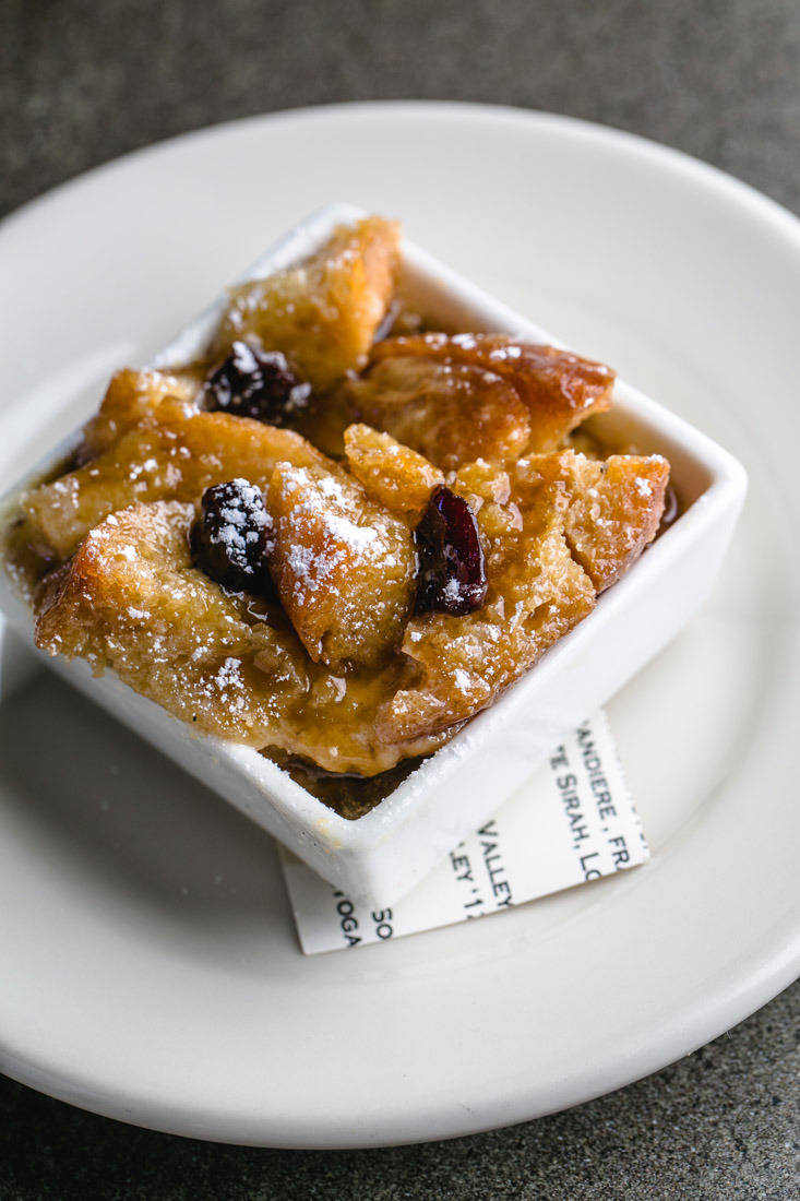 Even if you’re feeling stuffed or dining on a budget, you should make room for dessert. Order one for $5 or a trio for $14. My husband and I shared the bread pudding with bourbon sauce—as warm and comforting as a hug. The vanilla, caramel, oak and bourbon notes wonderfully pushed through the sugar-yeast flavors. Though the serving is small, we each enjoyed multiple bites, which proved to be the perfect amount to end the meal on a sweet note.