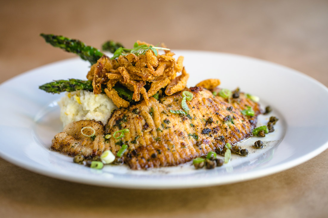For a meal that sticks with the coastal theme, start with the Charleston-style jumbo lump crab cake appetizer. The patty is dense with sweet meat and served atop a scrumptious roasted corn and pepper succotash alongside a crisp basil chip. The app is large enough to divvy up if you’re satisfied with a few bites, but if after one taste you decide it’s too good to share, no one will judge as long as you quickly order another for your dining companion.