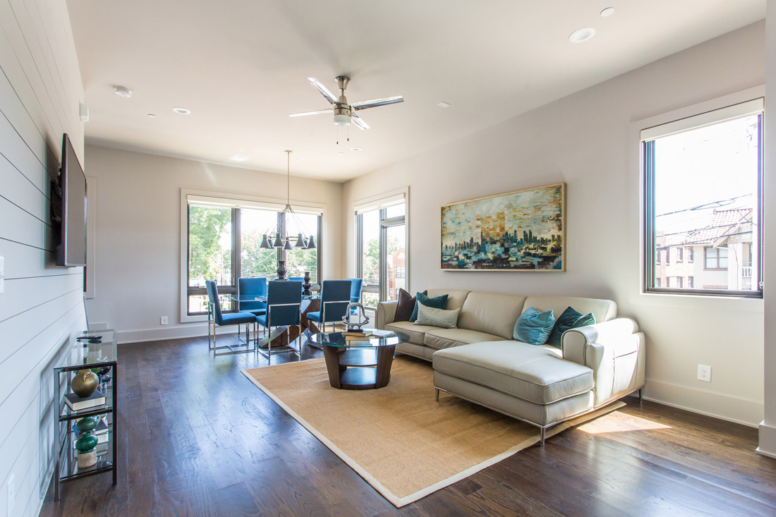 Tenants will have access to a central courtyard built with environmentally friendly pavers. The units range from 1,790 to 1,862 square feet and are available with two or three bedrooms—or two bedrooms and a “flex space.” While nearby attractions are plentiful, the units themselves are intended to serve as a destination, says Odom. “Our homeowners will likely lead an active lifestyle and care about the amazing walkability score our property has to offer, and our proximity to the BeltLine and the Historic Old Fourth Ward Park,” Odom says. “Our homes lend themselves to an active lifestyle as well as a social one.”