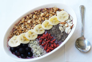 Rise and shine at Kale Me Crazy with an açai smoothie bowl ($8.50). It’s packed with fresh blueberries, cashews and dates, and is topped off with banana, coconut, granola and raw honey. Make it “deluxe” by adding goji berries, chia and hemp seeds.