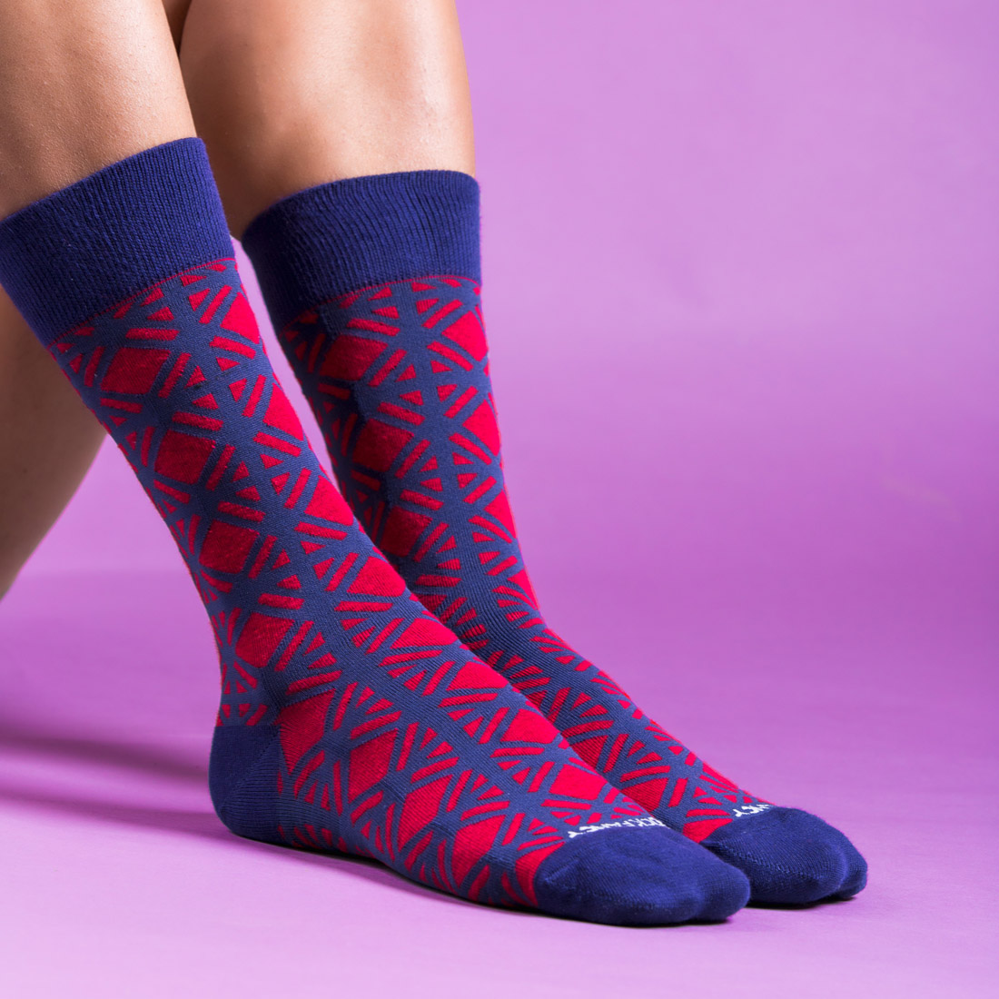The idea came to them while they were roommates in Virginia- Highland. Lewinger had just graduated from the University of Georgia, and Tewolde was wrapping up at Georgia State University. They drew inspiration for their socks’ patterns from life itself. Explains Lewinger: “I was standing behind some dude at El Mexicano who had on a really loud shirt, and I figured some iteration of that would be an awesome sock.”