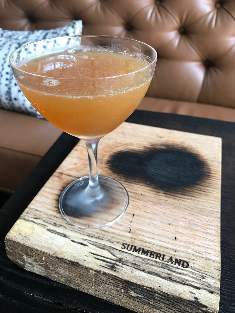 Imbibers looking for an upscale tipple can head to Bacchanalia on the Westside, where beverage director Andrew Harris has whipped up The Bandit, a smoky stunner featuring reposado tequila, maraschino liqueur, two kinds of amaro, mezcal and lime juice. “We use a piece of Summerland Farm Oak, from the same tree that makes up all of our tables, to serve the drink on,” says Harris. “Before taking it to the table, we burn the oak and catch the smoke in an upside-down glass. Then at the table, we flip the glass over and release the smoke, then pour the drink. It adds an amazing aroma that pairs nicely with the tequila and amaros. It’s a great way to wake up all the senses.”