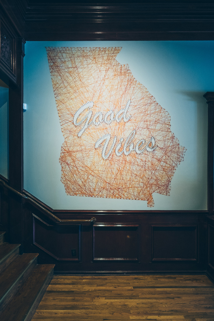 The former Old Spaghetti Factory sat vacant for six years before co-owners and brothers Stephen and Chris Bivins transformed it into a shiny, art-filled brewery. Hop sculptures hang from the original tin ceilings, and original millwork frames the space. Check out the piece they created—a giant string-art map of Georgia that reads “Good Vibes”—while you sip their Hops-De-Leon IPA or munch on a mound of Wu-Fries.