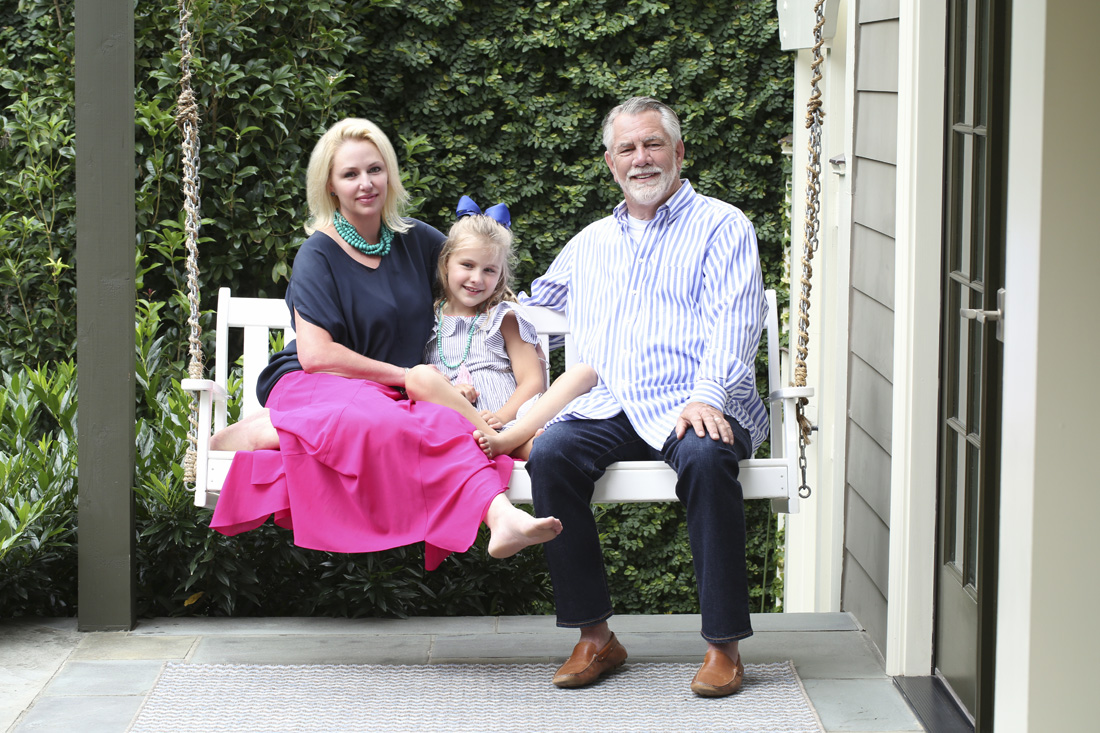 In the library, they added custom shelving around the couch and replaced French doors with pocket doors. In the basement, they created a playroom for Logan, their 7-year-old daughter, that features plenty of toy storage hidden behind barn doors covered with chalkboards. A small alcove is filled with cabinets, a sink and a Viking Professional beverage cooler. Out back, they now have a covered porch complete with a built-in grill. “We wanted [to get] more use out of [the porch],” Michael says. Heidi concurs. “It’s really comfortable,” she says. “We spend a lot of time out there.” The back porch looks over a small swimming pool, something not common in the neighborhood. “It’s like a little private oasis in the middle of Midtown,” Michael says. “The trees on the right and the crepe myrtle have created a canopy of privacy back here.” A simple addition to the front porch also had a big impact on the Cobles. “Since we put the swing on the front, we spend a ton of time out there,” Heidi says. In 2011, interior designer Kate Fleming of Pineapple House Interior Design came onboard to put the finishing touches on the home’s redesign.