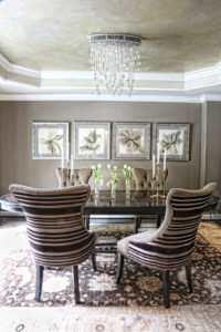 Michael quickly relays another reason why the wait was longer than expected. “The electrician who came to hang it had cut every strand perfectly even,” he says. They had to contact the manufacturer in Italy for replacement wire, which they then used to restring the “bubbles” so they cascaded down. “It took a couple more months to do that,” Michael says. “It was a challenge.” The artwork in the home is a mix of personal favorites and pieces chosen as part of the interior design. For instance, just inside the front door hangs a Peter Max painting Michael purchased for Heidi as an anniversary gift. “That’s my favorite,” Heidi says. She also likes the painting of trees by Atlanta artist Jay Scott that hangs over the fireplace in the master bedroom. For the Cobles, the only distraction to the overall look of their home is the neighborhood market that sits right next door. However, they covered the wall between the structures with creeping myrtle that, as Michael says, has greatly compartmentalized the house from its neighbor.
