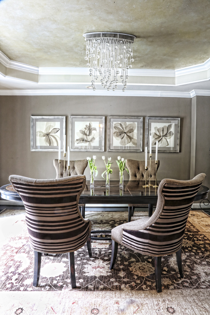 The light fixtures throughout the home add an element of sophistication to each room: the artichoke-style light over the kitchen table and the cascading glass light over the dining table are good examples. One of Heidi’s favorites is the “bubble light,” as she calls it, over the tub in the master bathroom, that was purchased at Cantoni in Virgina-Highland. “We found that light, and I said, ‘Wouldn’t it be so cool to put this over our bathtub, like having a bubble bath?’” Heidi says. “We had that light sitting in our basement for years, waiting for the bathroom and tub to be finished.”