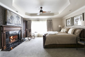 After Michael and his wife, Heidi, married in 2006, they began making improvements. First, they redid the kitchen. Today, it is filled with Viking Professional appliances, a Sub-Zero wine refrigerator and plenty of counter space that Heidi likes to use for cooking. In 2010, the couple remodeled the front and back exteriors, the master bedroom and bath, laundry room, guest room, basement and the bathroom off the library. The master bedroom now features a fireplace flanked by built-in cabinets, as well as a spacious sitting area. “The master is large and feels like a place you can escape to,” Michael says.